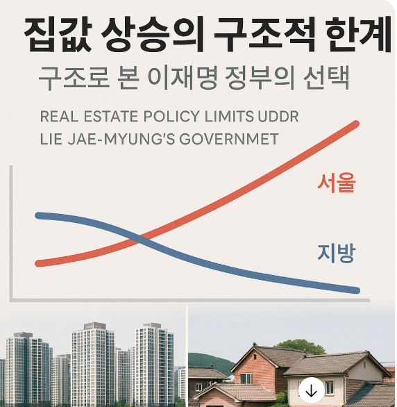이재명 정부는 출범 이후 비교적 시장 친화적인 규제 완화 시그널을 보냈지만, 집값은 전국적으로 제한적인 상승세에 머물고 있습니다. 특히 수도권 외 지역은 오히려 하락세가 뚜렷하죠. 이를 단순히 ‘정책 실패’로 보기는 어렵습니다. 오히려 구조적인 제약 속에서 시장이 반응하지 않는 현상을 이해해야 합니다.